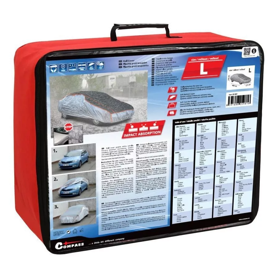 Die Autoabdeckung ist sehr robust und schützt das Auto bei Sturm zuverlässig vor beispielsweise Hagel oder Ästen. Dank flexibler Ränder und drei Gurten hält es zuverlässig auf allen Karosseriearten. Obwohl die Oberfläche wasserdicht ist, ist Die Autoabdeckung atmungsaktiv, sodass die Karosserie nicht korrodiert.