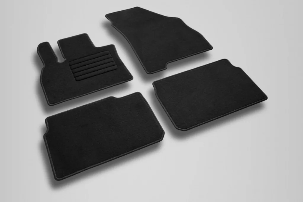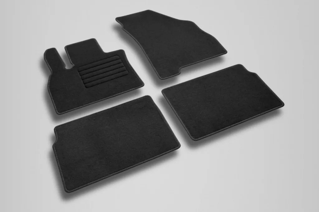 Das Material des Teppichs ist die Textilie. Das Material der textilen Matte ist seinem Zweck vollkommen angepasst, schützt den Boden des Autoinneraums, vermindert den Lärm in der Kabine bei der Fahrt, verleiht das schöne Design und der Innenraum wird dann gemütlicher und wärmer.
