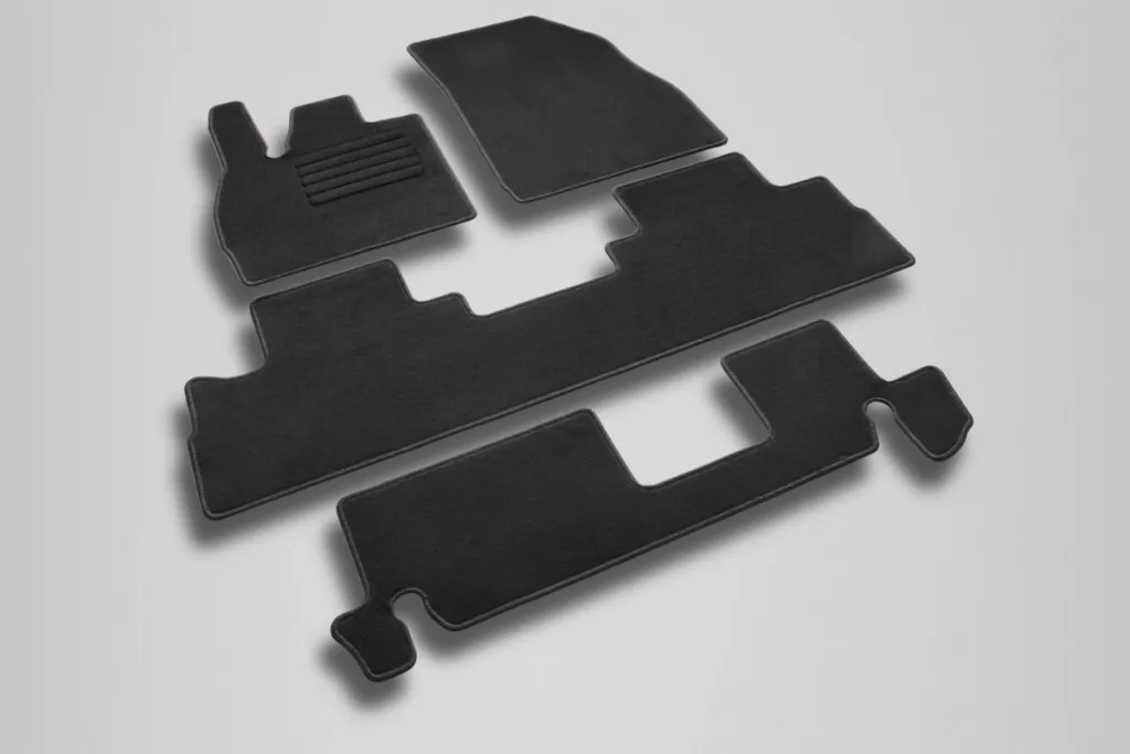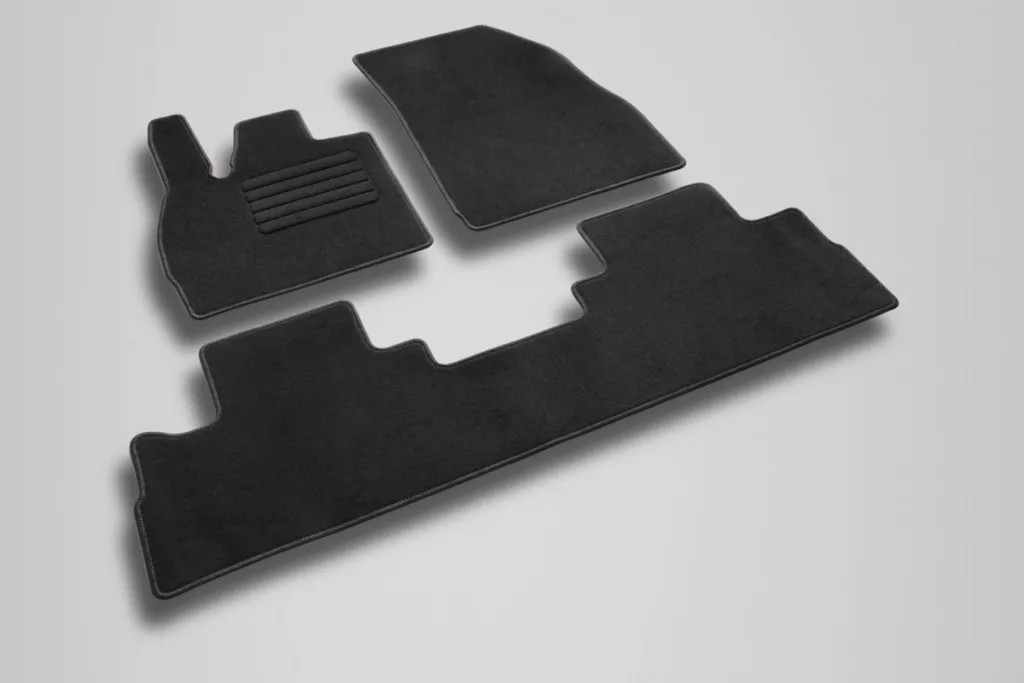 Das Material des Teppichs ist die Textilie. Das Material der textilen Matte ist seinem Zweck vollkommen angepasst, schützt den Boden des Autoinneraums, vermindert den Lärm in der Kabine bei der Fahrt, verleiht das schöne Design und der Innenraum wird dann gemütlicher und wärmer.
