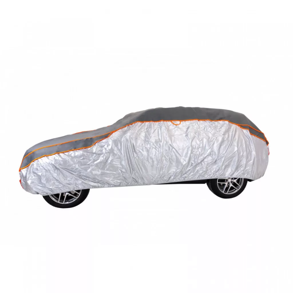 Die Autoabdeckung ist sehr robust und schützt das Auto bei Sturm zuverlässig vor beispielsweise Hagel oder Ästen. Dank flexibler Ränder und drei Gurten hält es zuverlässig auf allen Karosseriearten. Obwohl die Oberfläche wasserdicht ist, ist Die Autoabdeckung atmungsaktiv, sodass die Karosserie nicht korrodiert.