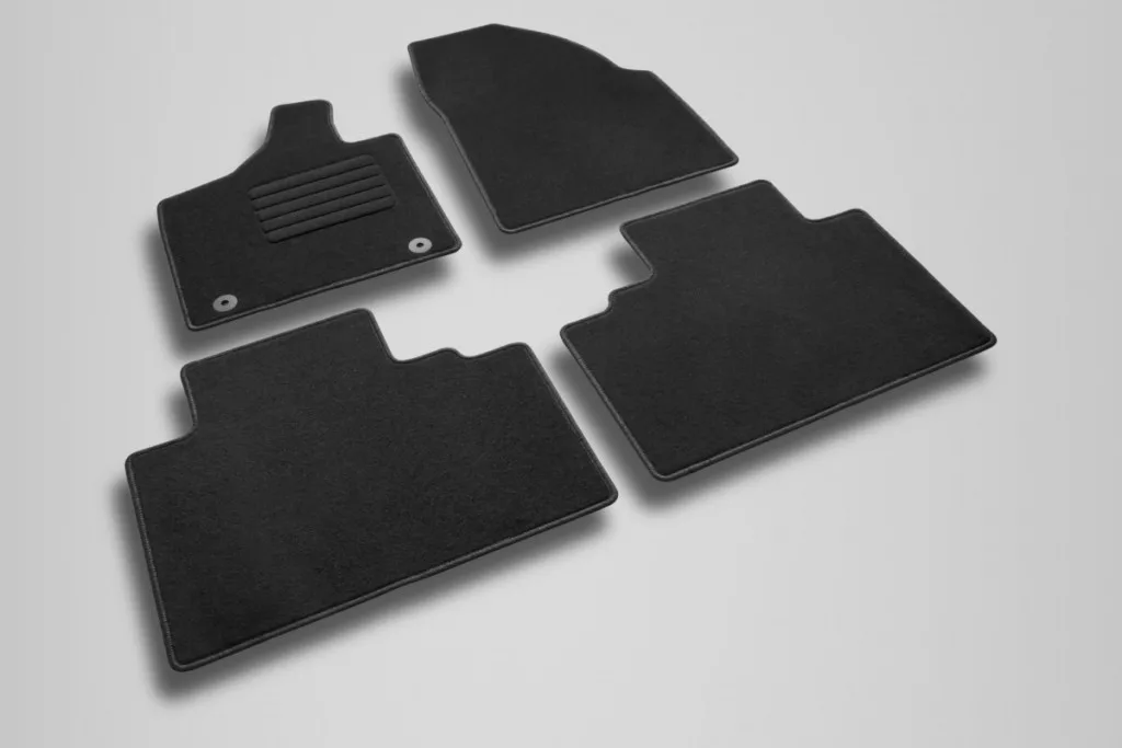 Das Material des Teppichs ist die Textilie. Das Material der textilen Matte ist seinem Zweck vollkommen angepasst, schützt den Boden des Autoinneraums, vermindert den Lärm in der Kabine bei der Fahrt, verleiht das schöne Design und der Innenraum wird dann gemütlicher und wärmer.
