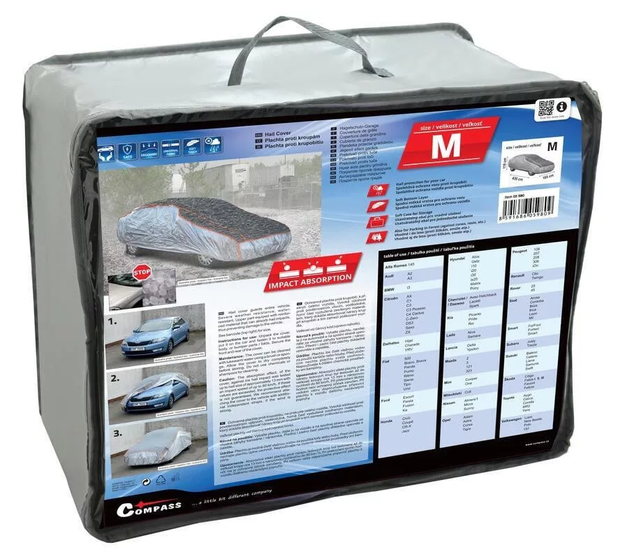 Die Autoabdeckung ist sehr robust und schützt das Auto bei Sturm zuverlässig vor beispielsweise Hagel oder Ästen. Dank flexibler Ränder und drei Gurten hält es zuverlässig auf allen Karosseriearten. Obwohl die Oberfläche wasserdicht ist, ist Die Autoabdeckung atmungsaktiv, sodass die Karosserie nicht korrodiert.