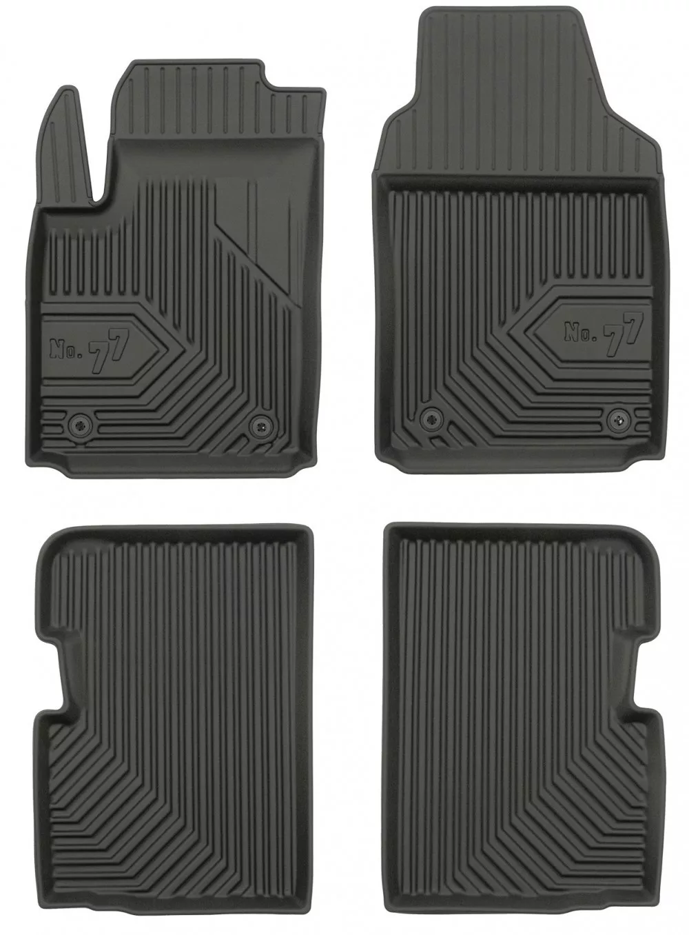 Innerhalb der 3D-Gummimatten gibt es derzeit mehrere Designvarianten – PROLINE und NO.77 –, die zwar vom gleichen Hersteller stammen, sich jedoch im Aussehen unterscheiden. Hersteller: FROGUM.