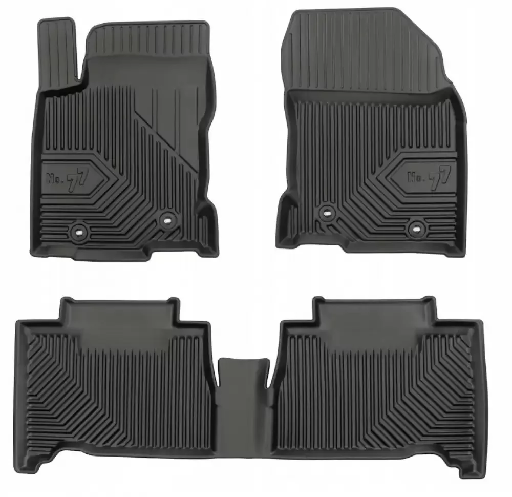 Innerhalb der 3D-Gummimatten gibt es derzeit mehrere Designvarianten – PROLINE und NO.77 –, die zwar vom gleichen Hersteller stammen, sich jedoch im Aussehen unterscheiden. Hersteller: FROGUM.