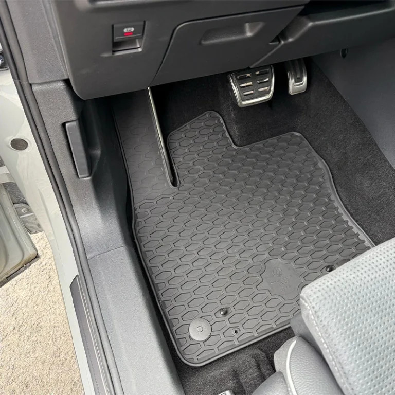 Die Gummimatten des Mercedes-Benz E Cabrio ist ein hochwertiges, passgenaues Autozubehör, das sich perfekt an die Form des Autobodens anpasst. Das Produkt ist für Mercedes-Benz E Cabrio (A238)-Modelle zwischen 2016 und 2022 konzipiert und passt daher perfekt in den Innenraum des Autos.